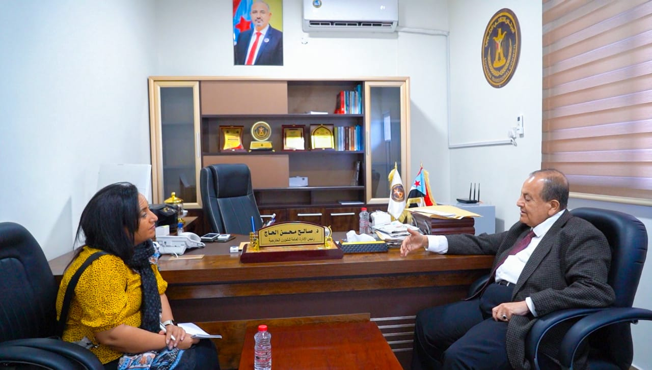 استقبل رئيس الإدارة العامة للشؤون الخارجية للمجلس الانتقالي الجنوبي، د. صالح محسن الحاج، اليوم الخميس، في مكتبه بالعاصمة عدن، المدير الإقليمي لمركز مدنيين في ظل الصراع “سيفيك”، السيدة دينا المأمون.