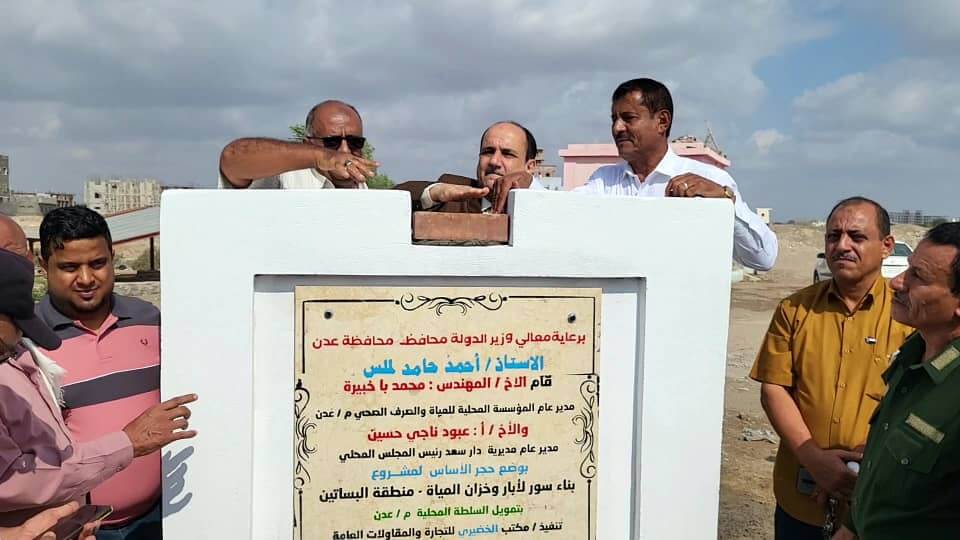 برعاية وزير الدولة، محافظ العاصمة عدن، الأستاذ أحمد حامد لملس، وضع مدير عام مديرية دار سعد رئيس المجلس المحلي الاستاذ عبود ناجي حسين، صباح اليوم الأربعاء، حجر الأساس لمشروع بناء وتسوير ثلاثة مواقع آبار المياه مع ملحقاتها بمنطقة بئر فضل غرب المديرية وتسوير الخزان البرجي وعزلة عن مدرسة البساتين، بحضور المهندس كامل الحمامي ممثل عن المؤسسة العامة للمياه والصرف الصحي بالعاصمة عدن.