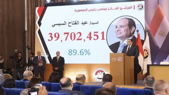 أعلنت الهيئة الوطنية للانتخابات في مصر، عن فوز الرئيس عبد الفتاح السيسي، بولاية رئاسية ثالثة بنسبة 89.6 بالمئة من الأصوات الصحيحة.