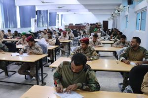 دشن معهد القادة والاركان في العاصمة عدن اليوم الأربعاء الامتحانات النهائية للدورة الثانية قادة كتائب مشاة والدورة السابعة قادة سرايا مشاة والدورة الثالثة قادة بطاريات دفاع جوي بحضور قائد القوات البرية الجنوبية اللواء الركن/ علي احمد البيشي (أبو طاهر).