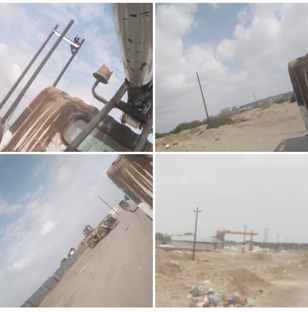 تستمر أعمال نصب وركز الأعمدة لخط تصريف الطاقة الجزئي لمحطة الطاقة الشمسية في العاصمة عدن.
