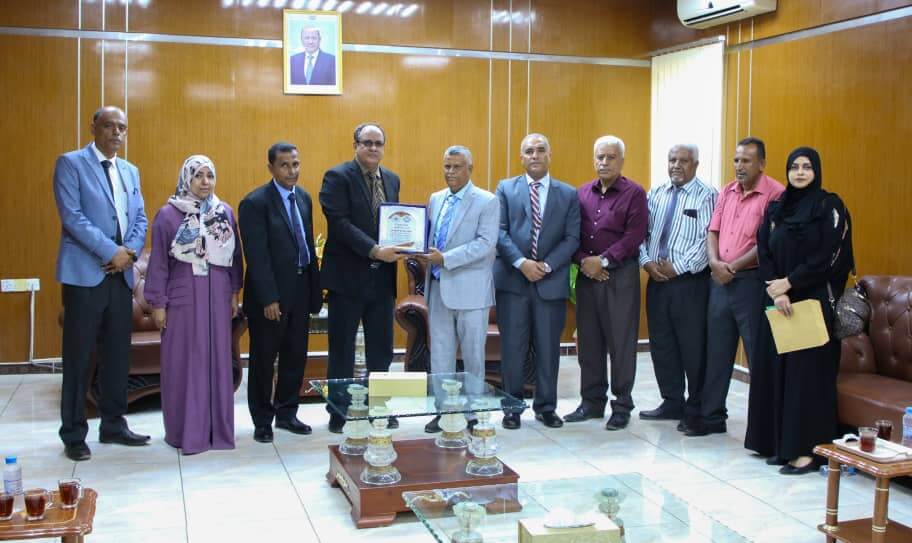 وعقب توقيع الاتفاقية كرم وفد جامعة حضرموت رئيس جامعة عدن الدكتور الخضر لصور وعميد كلية الإعلام الدكتور وهيب عزيبان بدرع نظيرًا للإسهامات الكبيرة التي يقدمانها كلَ في إطار عمله الأكاديمي.