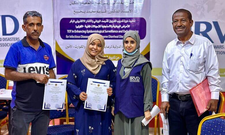 اختتمت في العاصمة عدن، الدورة التدريبية الخاصة بتدريب المدربين (TOT) في الترصد الوبائي والانذار الاليكتروني المبكر للأمراض الوبائية والاستجابة للاسهالات المائية الحادة، التي نظمها قطاع الرعاية الصحية الأولية بوزارة الصحة بدعم من الجمعية الدولية لرعاية ضحايا الحروب والكوارث(الامين).