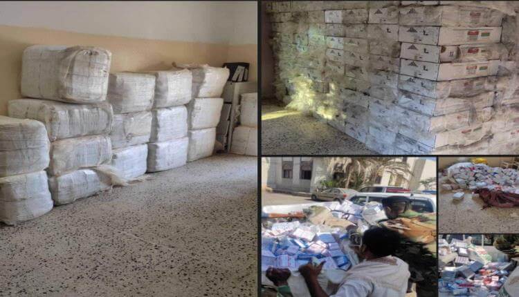 وقال مدير شرطة الشعب، العقيد عبيد صالح محسن، عقب تحريات أمنية واسعة قمنا بمداهمة أحد الاحواش التابعة للمهربين في منطقة بئر أحمد، مضيفا أنهم ضبطوا سبعة عشر كرتون (شمة الحوت)، وخمسة كرتون معسل، ومائة وسبعة وسبعين كرتون من المبيدات، وثلاثون كرتون سجائر وادوية متنوعة، وشاحنة صغيرة.
