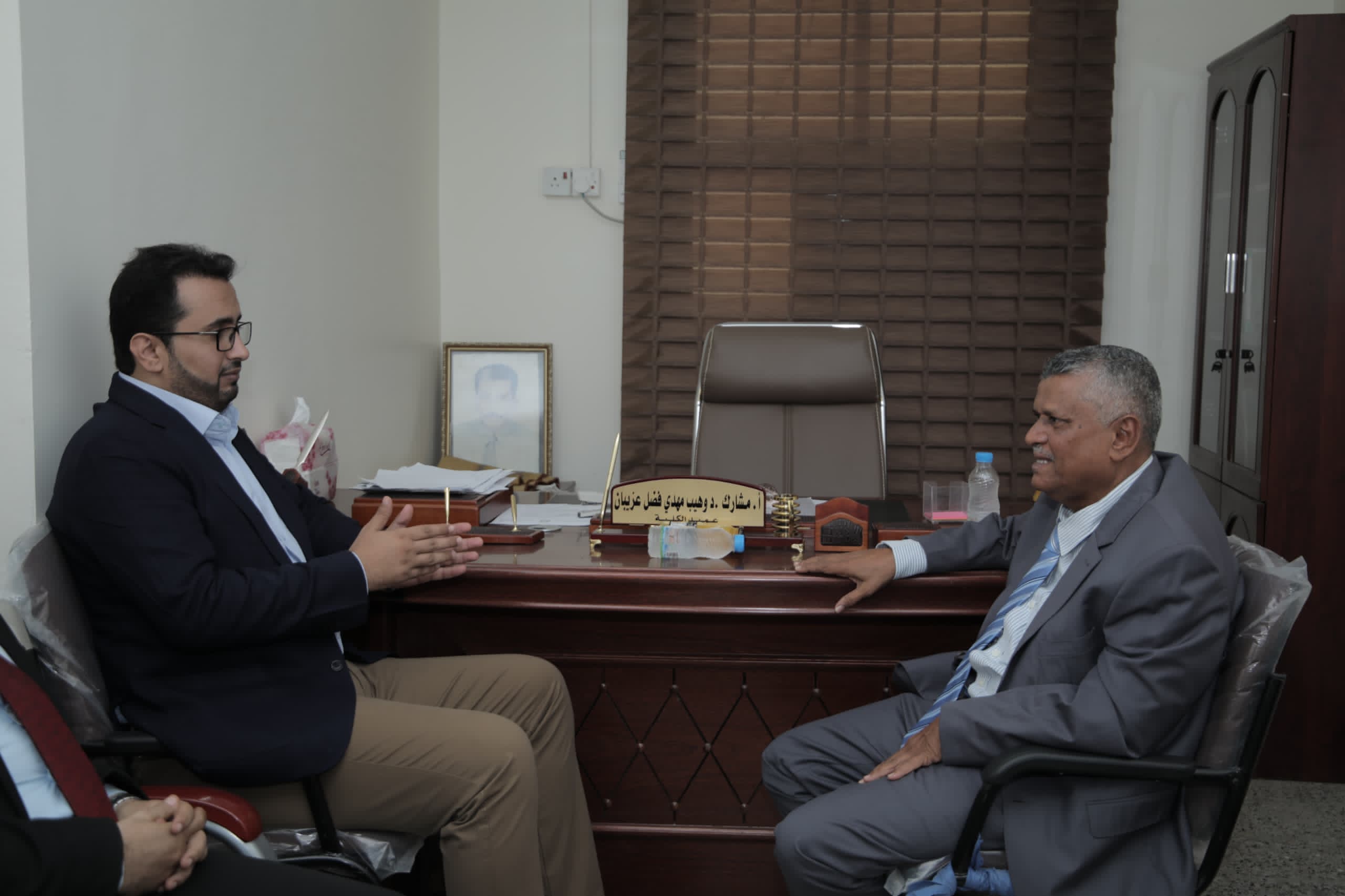 وفي الزيارة التي رافقه فيها الاستاذ مختار اليافعي نائب رئيس الهيئة ، التقى العولقي بالاستاذ مشارك د.وهيب مهدي عزيبان عميد كلية الاعلام الذي أطلعه على اقسام الكلية ونشاطها الاكاديمي والتعليمي.