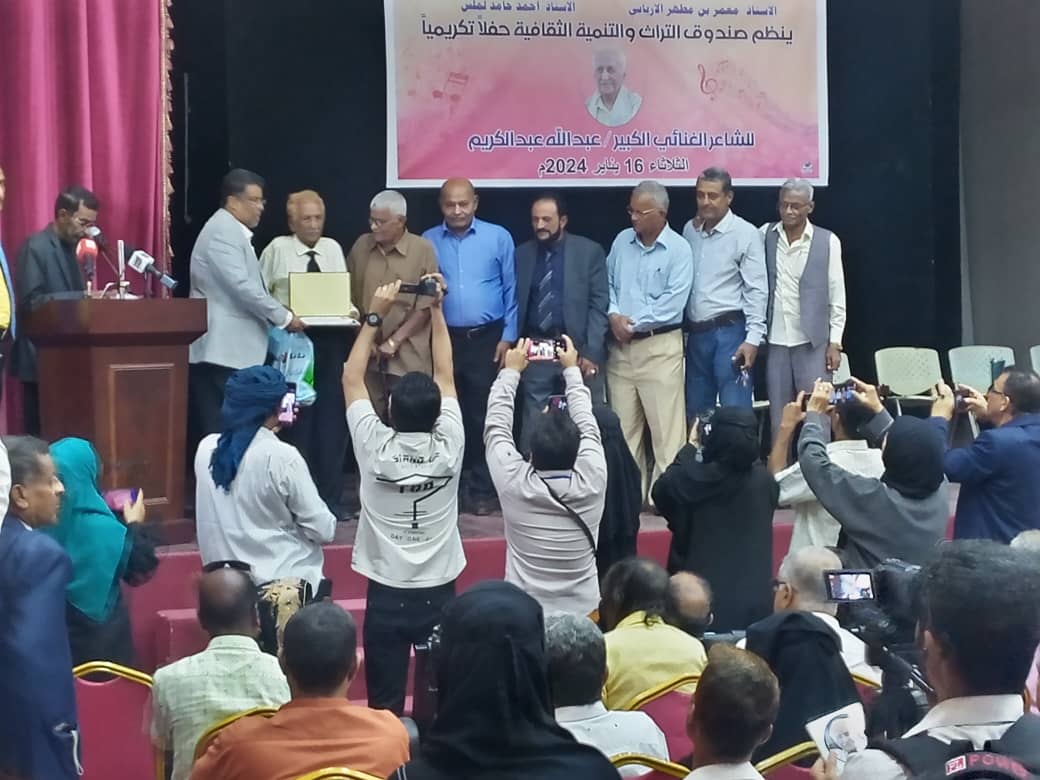 برعاية لملس .. مكتب الثقافة بالعاصمة عدن يكرم عملاق القصيدة الغنائية الشاعر عبدالله عبدالكريم.