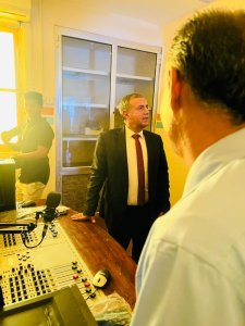 وطاف الدكتور الأستاذ الخضر لصور بمعية عميد كلية الإعلام د. أ. وهيب عزيبان في مبنى إذاعة صوت الجامعة بحرم الكلية بعد إعادة ترتيبه وتأهيله للاطلاع على الأجهزة والمعدات الخاصة بتشغيل الإذاعة.