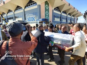 وأثناء الاستقبال الرسمي للجثمان، تقدما معاون والشعيبي وعددً من المسؤولين بخالص التعازي وعظيم المواساة لأسرة الفقيدة التي كانت متواجدة في مطار عدن الدولي بانتظار وصول الجثمان.