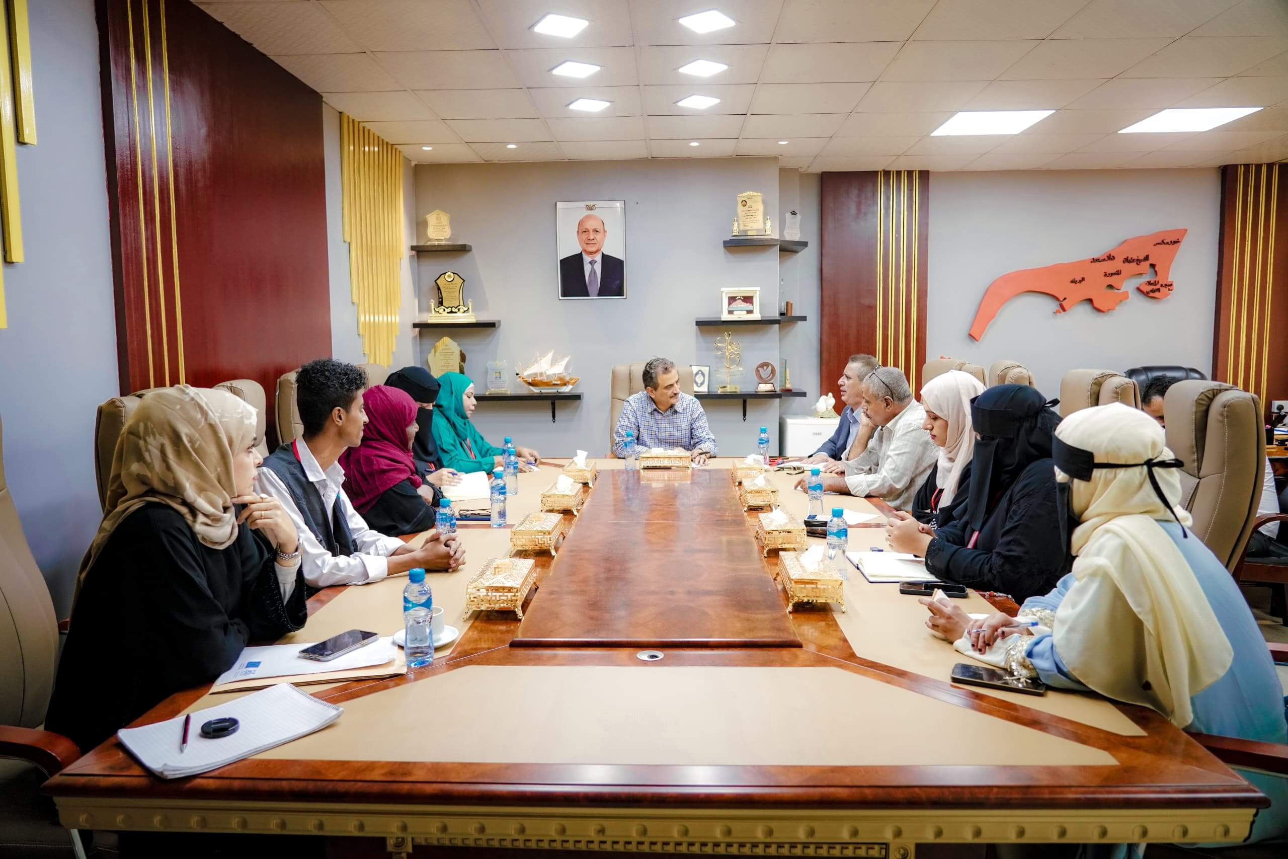 جاء ذلك خلال لقائه اليوم الخميس، رئيستي جمعيتي أرمان التنموية، وأمان للفئات الأقل حظا نسيم أحمد سالم، وسميرة سيود، وعددا من الاستشاريين والموظفين بحضور مدير عام مكتب الشؤون الاجتماعية والعمل بالعاصمة عدن الدكتور محمد حمود، ومديرة مكتب الإعلام بالعاصمة هدى الكازمي.
