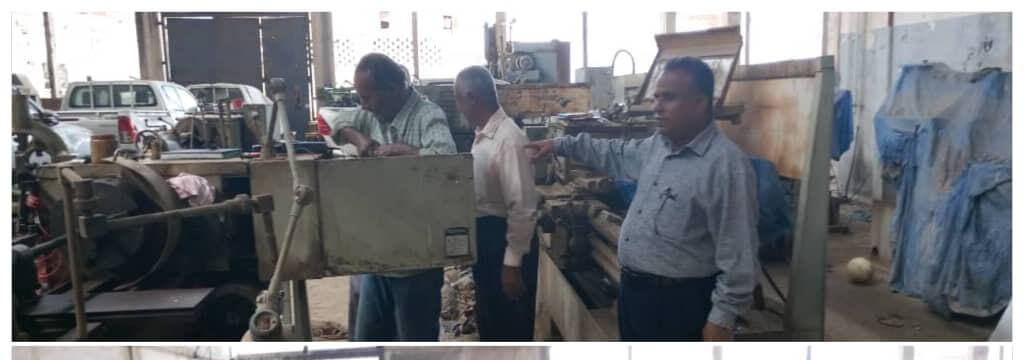 وخلال الزيارة أستمع رئيس الهيئة من المهندس في مجال الخراطة بالورشة محمد أبو بكر إلى شرح مفصل اعمال الصيانه التي تمت من خلال توفير بعض القطع التي تضررت بسبب توقف الآلات عن العمل لفتره طويلة مؤكداً على أهمية الاستعانة بالكوادر السابقة التي خدمت بالورشة خلال السنوات السابقة أثناء إجراء أعمال إعادة تأهيل وصيانة الورشة كون تلك الكوادر تحمل قدرا كبيرا من التراكم المعرفي.والتي ستقدم خبراتها اذا طلبت اعمال خراطه باي وقت.