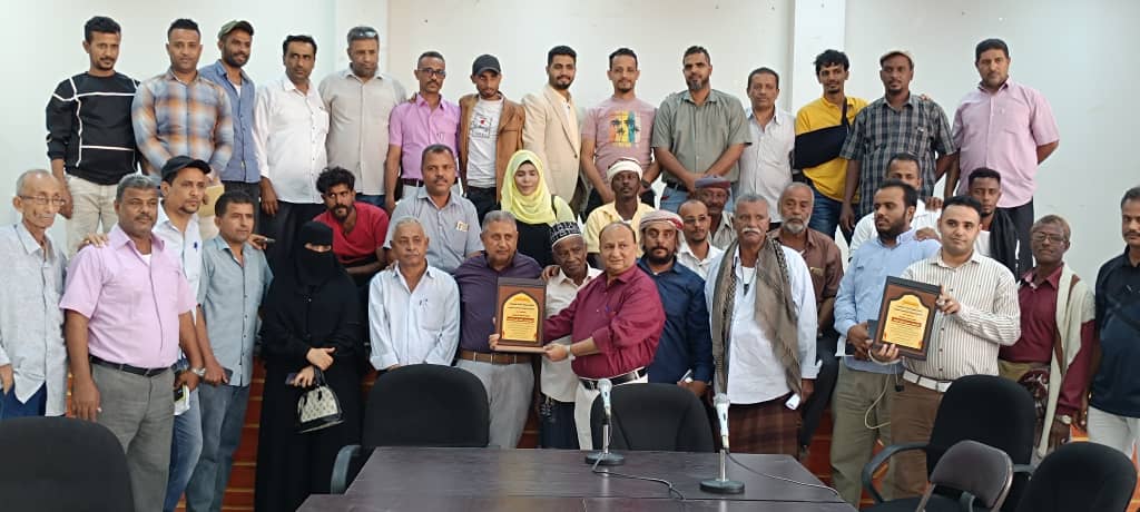 حيث قام نائب رئيس اتحاد النقابات رئيس نقابة عمال النظافة ثابت يحي احمد بتسليم درع النقابة للمهندس قائد راشد انعم المدير التنفيذي لصندوق النظافة كما تم تسليم ترس النقابة تكريما للاستاذ / نبيل غانم نائب المدير العام للشؤون الادارية والمالية تسلمه بالنيابة عنه نجله