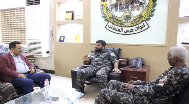 استقبل العميد أحمد مهدي بن عفيف قائد قوات حرس المنشآت الحكومية اليوم في مكتبه في العاصمة عدن رئيس الهيئة العامة لتنظيم شؤون النقل البري الاستاذ فارس شعفل.