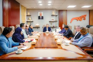 جاء ذلك، خلال لقائه رئيس الغرفة التجارية بالعاصمة عدن أبو بكر باعبيد، ومدير عام مكتب الصناعة والتجارة وسيم العمري، وعددا من رجال المال والأعمال وممثلين عن القطاع الخاص.