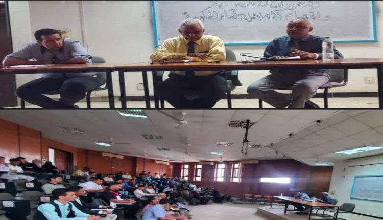 عقد قسم العلوم السياسية في كلية الاقتصاد والعلوم السياسية جامعة عدن صباح اليوم الاثنين في قاعة كلية الاقتصاد والعلوم السياسية بجامعة عدن في العاصمة عدن، وبرعاية عميد الكلية الدكتور أحمد محمد مقبل محاضرة بعنوان “التطورات الاقتصادية والمهام العاجلة امام الحكومة”، والتي ألقاها كل من الدكتور أحمد محمد مقبل عميد الكلية والدكتور حسين سعيد الملعسي رئيس مؤسسة الرابطة الاقتصادية وأستاذ الاقتصاد الدولي.