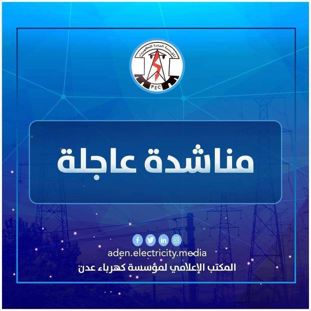 تناشد المؤسسة العامة لكهرباء عدن قيادة محافظة أبين بضرورة التدخل للافراج عن ناقلات وقود النفط الخام القادمة من محافظة شبوة والمخصصة لتزويد محطة الرئيس بترومسيلة بالوقود وذلك عقب قطع الطريق من قبل مجهولين في منطقة حسان.