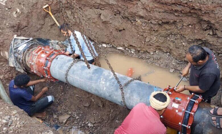 مؤسسة مياه العاصمة عدن تعلن عودة ضخ المياه لمديرية التواهي بعد اصلاح كسر للخط الرئيسي الممون له