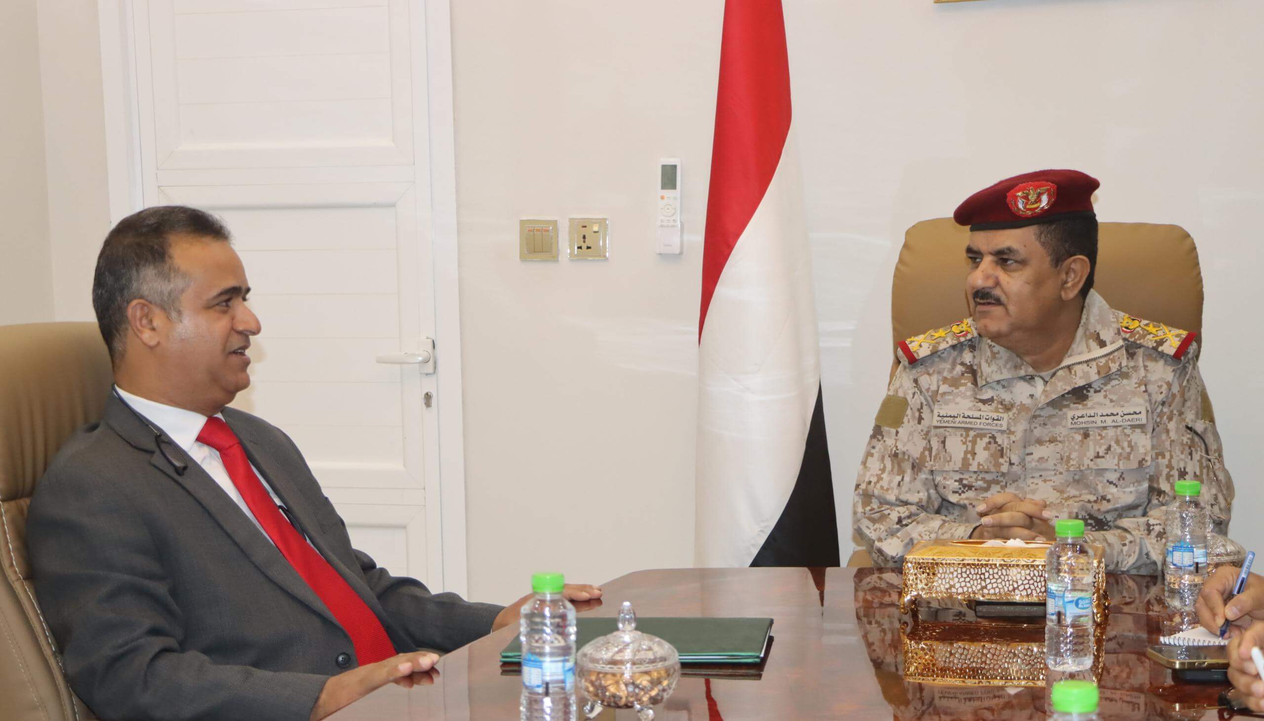 التقى وزير الدفاع الفريق الركن محسن محمد الداعري اليوم الاحد في العاصمة عدن بالسفير الليبي لدى اليمن ادريس احمد بوبكر.