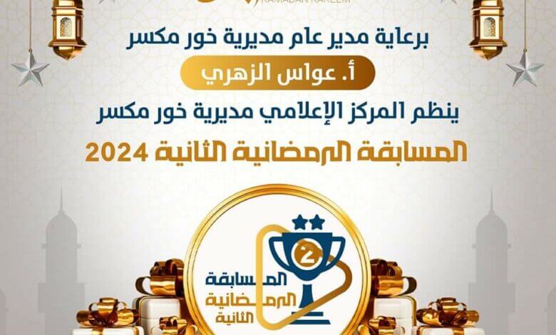 تحت رعاية مدير عام مديرية خورمكسر عواس الزهري، ينظم المركز الإعلامي لمديرية خورمكسر المسابقة الرمضانية الثانية لعام 2024.