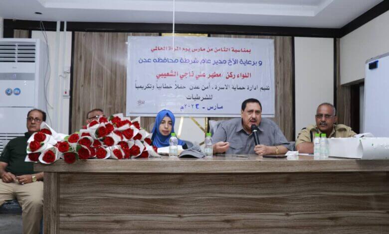 كرم مدير أمن العاصمة عدن اللواء الركن مطهر علي ناجي، عدد من الشرطيات المميزات وذلك بمناسبة يوم المرأة العالمي ، خلال حفل نظمته إدارة حماية الأسرة بـأمن العاصمة عدن.