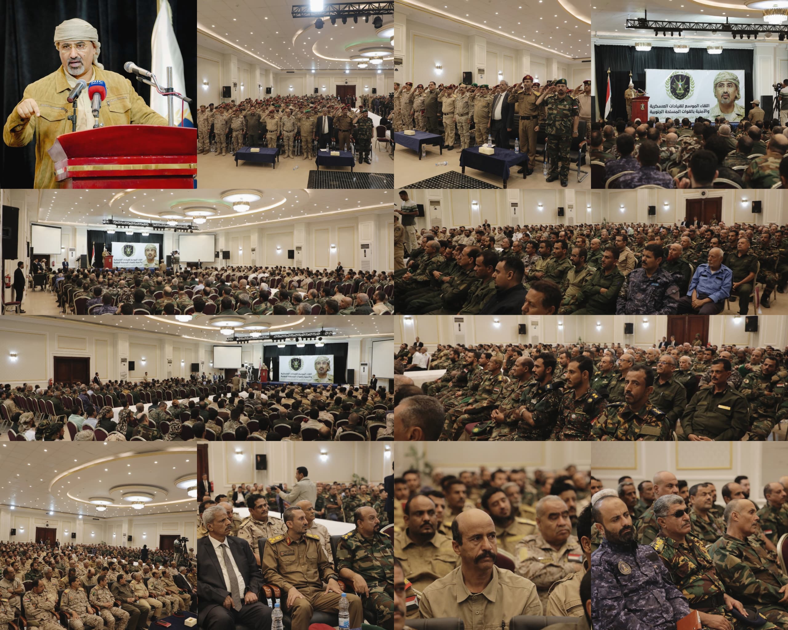 وفي كلمة توجيهية للحاضرين من رؤوساء الهيئات، ومديري الدوائر العسكرية والأمنية، ومحافظي المحافظات، وقادة المحاور والوحدات الدفاعية والأمنية، قال الرئيس الزُبيدي :”إن هذا اللقاء الموسع يكتسب أهميته من عظمة الدور والمهام التي تضطلع بها قواتنا المسلحة والأمن، وما تحمله من رسالة تاريخية ووطنية على عاتقها في تأمين حاضر ومستقبل الجنوب والذود عن أراضيه وحماية أمنه واستقراره، وكذلك لأهمية ما تحمله المرحلة الراهنة من تحديّات”.