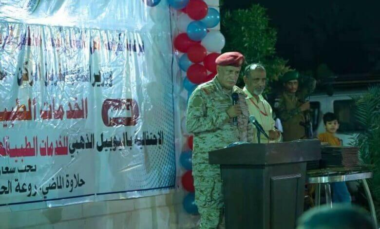 وشهد الحفل، استعراض فيلم وثائقي يسرد بداية تأسيس الدائرة الطبية، بعد أن دُمرت بشكل كامل من قبل قوى الاحتلال اليمني، وما يقوم به العاملين على الخدمات الطبية في الوقت الراهن من جهود ،وتسليط الضوء عن الخدمات والتخصصات التي يقدمها مستشفى عبود ومستشفى باصهيب لمنتسبي القوات المسلحة والأمن.