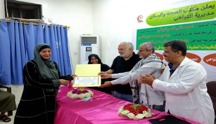 وفي الاختتام المخيم تم تكريم كل من اسهم في نجاح أعمال المخيم الطبي الرمضاني المجاني في مديرية التواهي.
