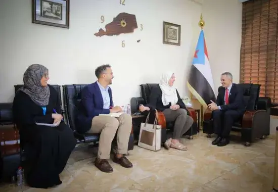 رحب مختار اليافعي نائب رئيس الهيئة الوطنية للإعلام الجنوبي بإدوارد جاكسون مدير مكتب المبعوث الدولي بالعاصمة عدن ومي الشيخ رئيس قسم الإعلام والتواصل الاستراتيجي في الاردن وتمنى عبيد مسؤول القسم السياسي في مكتب المبعوث.