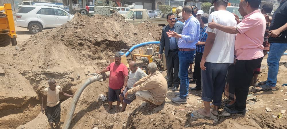 تفقد مدير عام مديرية المنصورة بالعاصمة عدن، أحمد علي الداؤودي، ومدير عام المؤسسة المحلية للمياه والصرف الصحي بالعاصمة، المهندس محمد بن محمد باخبيره، اليوم “الأحد”، العمل في إصلاح أنبوب المياه الرئيسي المغذي للمديرية، بعد تعرضه لكسر في شارع التسعين، من قبل الجهة المنفذة لمشروع إعادة تأهيل الشارع المزدوج بين جولتي “السفينة” و”الكثيري”.