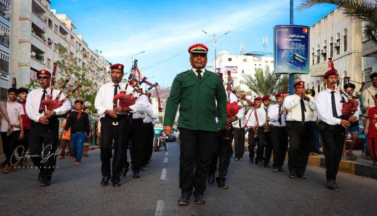 جابت الفرقة النحاسية الموسيقية العسكرية للقوات المُسلحة الجنوبية، اليوم، شوارع العاصمة عدن.