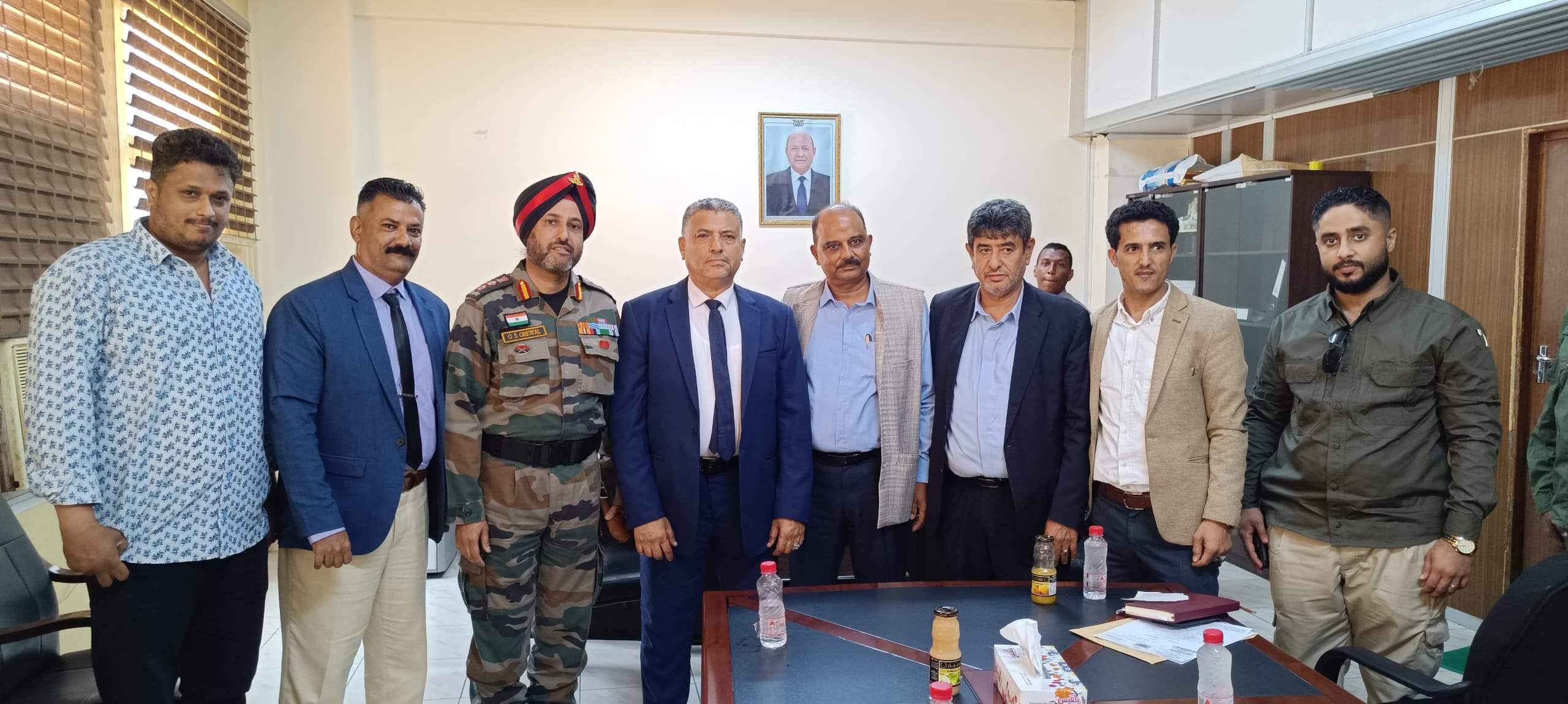 من جانبه الملحق العسكري بالسفارة الهندية / حريوال سينج اكد حرص بلاده على إعادة وتشغيل القنصلية الهندية في عدن وفي تعزيز التعاون التجاري والتبادل الثقافي والمنح التعليمية واقامة علاقة توامة بين مدينتي مومباي وعدن