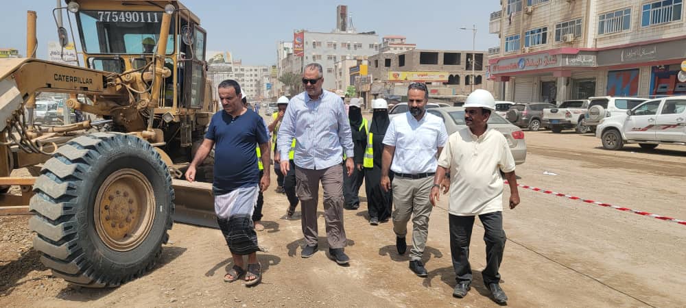 الماس يتفقد مستوى إنجاز العمل في مشروع إعادة تأهيل الطريق المزدوج ما بين دواري ‘السفينة’ و’بنك عدن بالمنصورة