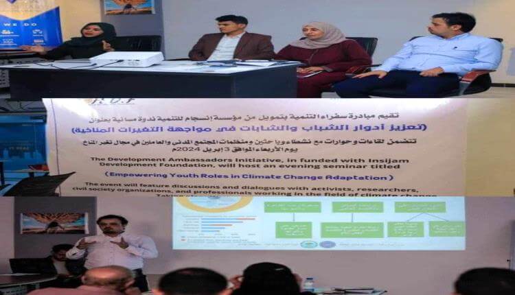 ومن هذا المنطلق نفذت مؤسسة انسجام للتنمية ورشة نقاشية حول تعزيز أدوار الشباب في مواجهة التغيرات المناخية، بالشراكة مع مبادرة سفراء للتنمية، وحضور كوكبة من الناشطين والشخصيات الإجتماعية ومنظمات المجتمع المدني التي تهتم بحماية البيئة.