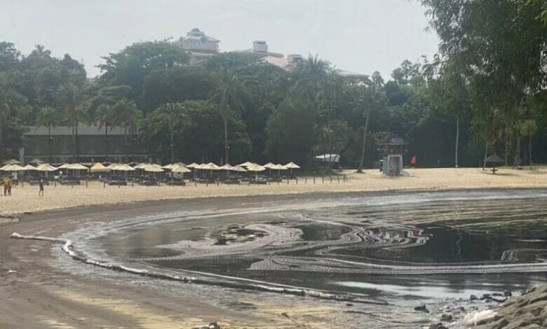 أدى تسرب نفطي في ميناء شحن إلى إغلاق الشواطئ في جزيرة سنتوسا السياحية بجنوب سنغافورة اليوم السبت.