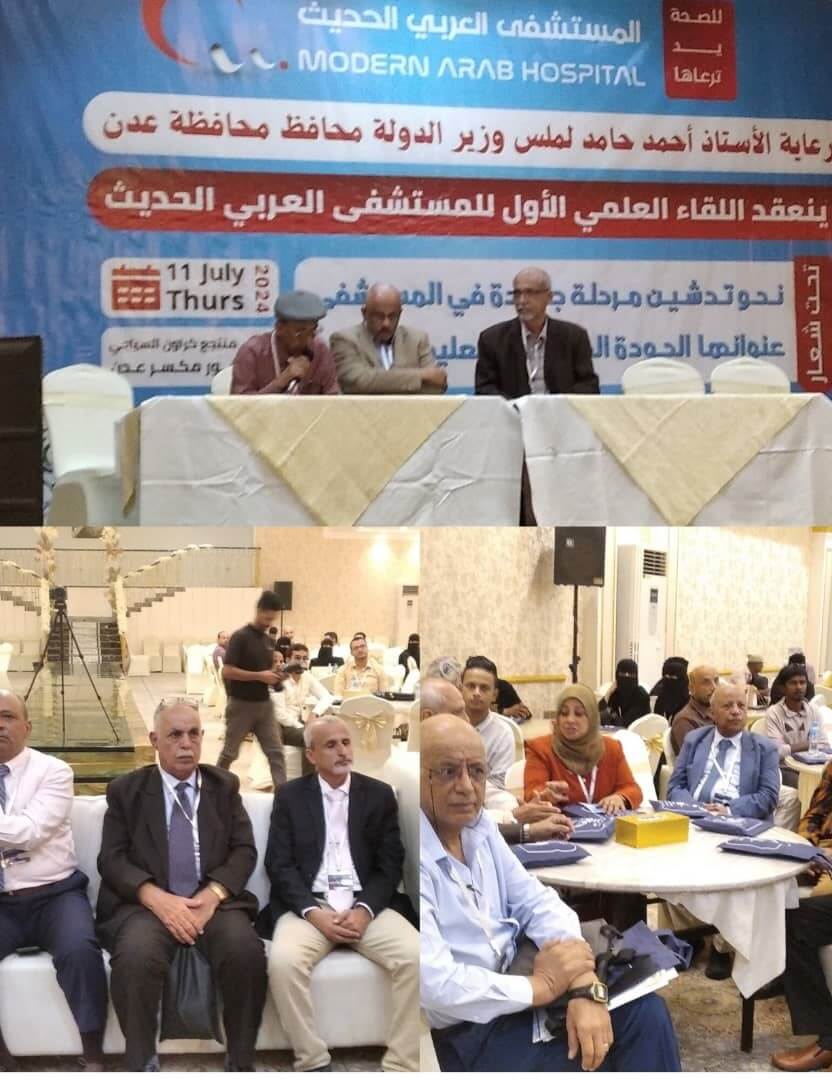 دشن صباح اليوم في العاصمة عدن فعالية اللقاء العلمي الأول لإدارة مستشفى العربي الحديث، بمناسبة الذكرى الاولى لتأسيسه، وذلك تحت شعار (نحو تدشين مرحلة جديدة بعنوان الجودة الصحية والتعليم المستمر).