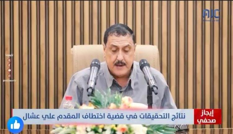 وأوضح مدير أمن عدن أنه في 12 يونيو تم تسجيل بلاغ جنائي بواقعة الاختطاف في شرطة كابوتا بعد التأكد من تسجيلات كاميرات المراقبة، مشيراً : تواصلنا مع مختلف الأجهزة الأمنية والشُرط عقب تلقينا بلاغاً عن فقدان المقدم عشال وأفادت بعدم احتجازه لديها.