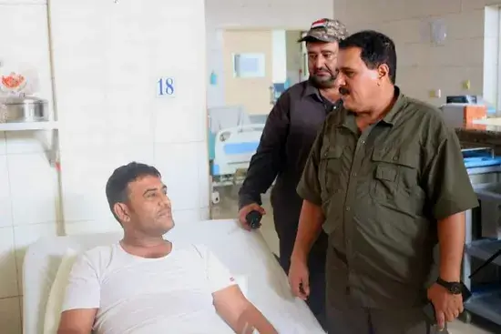تفقد العميد أبو بكر جبر نائب مدير أمن العاصمة عدن، اليوم الأحد، المواطن الجريح خضر أحمد الذي سقط يوم أمس جريحا إثر إطلاق نار من قبل خارجين عن النظام بساحة العروض.