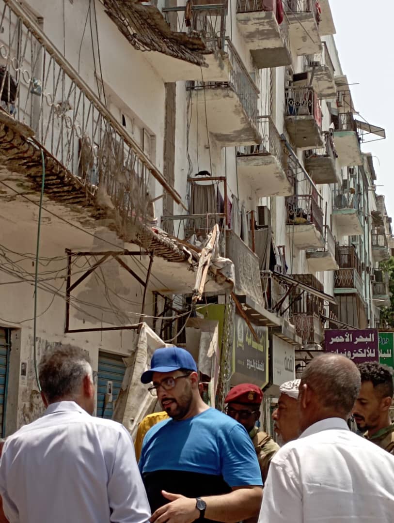 تفقد وكيل العاصمة عدن الأستاذ عبد الرؤوف زبن السقاف، صباح اليوم، موقع انهيار جانب من شرفات إحدى العمارات بالشارع الرئيسي بمديرية المعلا، فور الإبلاغ بوقوع الحادث، للوقوف على تداعيات الموقف واتخاذ كافة الإجراءات اللازمة بشأنه، والذي لم يسفر عن أي حالات إصابة في أوساط المواطنين، وكان ذلك وحضور مدير المديرية المعلا الأستاذ عبد الرحيم الجاوي ومدير شرطة المديرية العقيد فضل الجحافي، وبعض القيادات الأمنية بالمديرية،