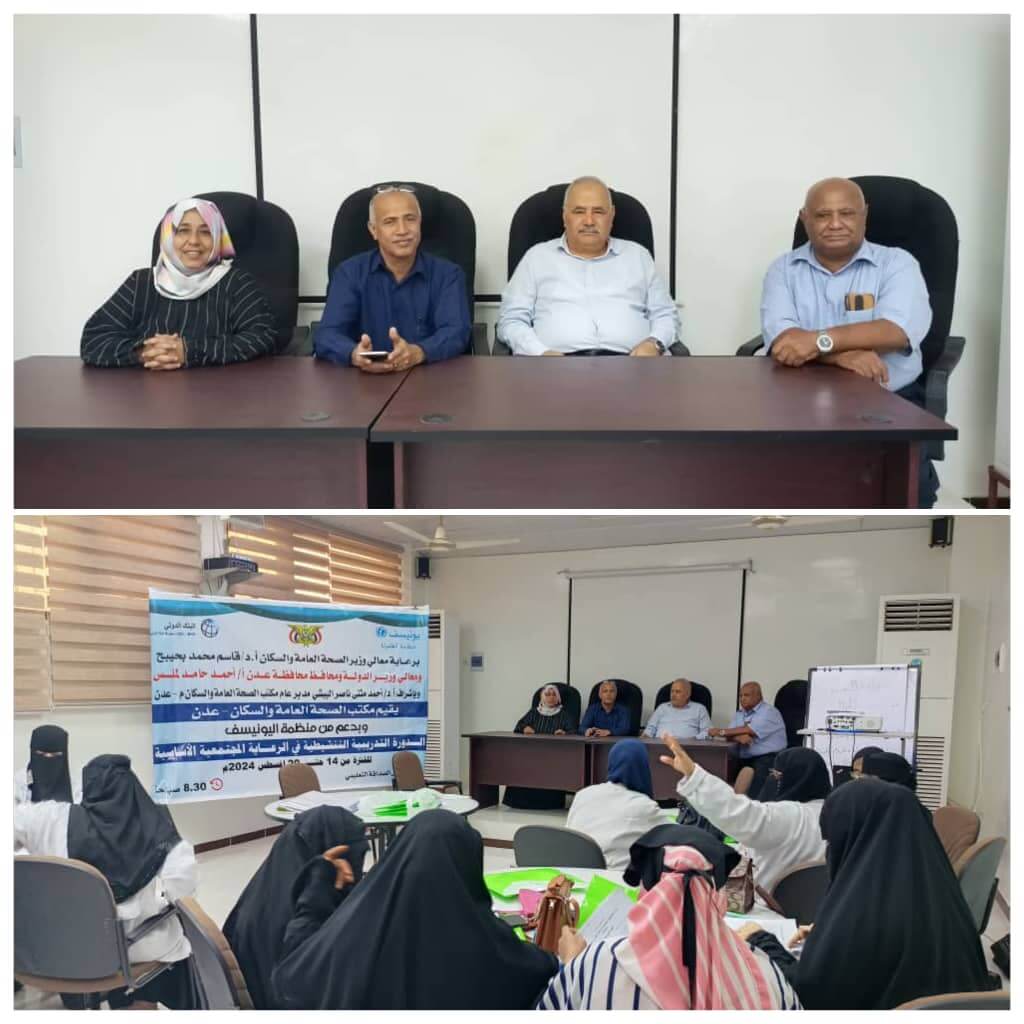 دشن مدير عام مكتب الصحة والسكان بالعاصمة عدن الدكتور أحمد البيشي اليوم الأربعاء بالعاصمة عدن فعاليات الدورة التدريبية التنشيطية في الرعاية المجتمعية الأساسية والتي ينظمها مكتب الصحة العامة والسكان بعدن بالتعاون مع منظمة اليونيسيف وبدعم من البنك الدولي