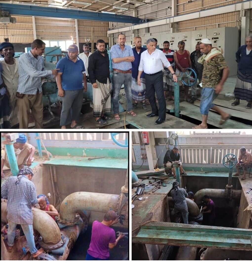 أمين عام العاصمة عدن يطلع على إنجاز مؤسسة المياه وصيانة محطة البرزخ