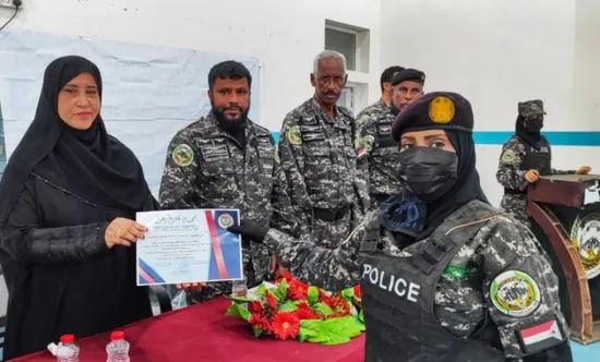 نظمت قيادة قوات حرس المنشآت وحماية الشخصيات في العاصمة عدن، اليوم الأحد، حفل تخرج الدفعة الثالثة من قوة الشرطة النسائية التابعة للقوات.