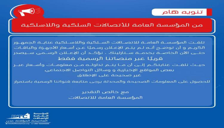 “تلفت المؤسسة العامة للاتصالات السلكية واللاسلكية عناية الجمهور الكريم وأن توضح أنه لم يتم الإعلان رسميًا عن أسعار الأجهزة والباقات حتى الآن الخاصة بخدمة ستارلينك.