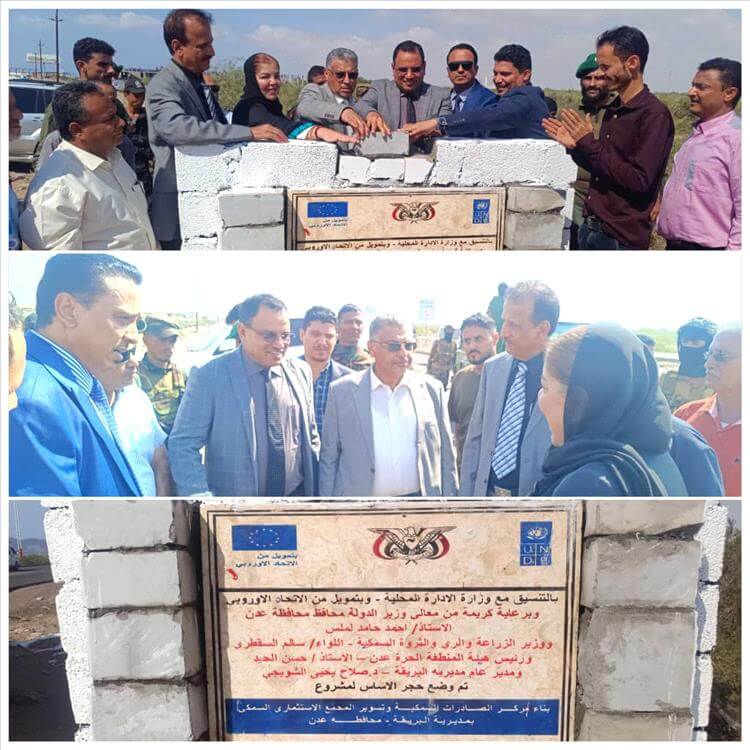 بمعية عوض مشبح وكيل وزارة الإدارة المحلية ، بوضع حجر الأساس لمشروع بناء مركز الصادرات السمكية وتسوير المجمع الاستثماري السمكي بمنطقة الحسوة بالبريقة والبالغ تكلفته مليون وخمسمائة الف دولار بتمويل من الاتحاد الأوروبي وتنفيذ برنامج الأمم المتحدة (UNDP) ،والذي يأتي ضمن مشروع تعزيز المرونة المؤسسية والاقتصادية في بلادنا .