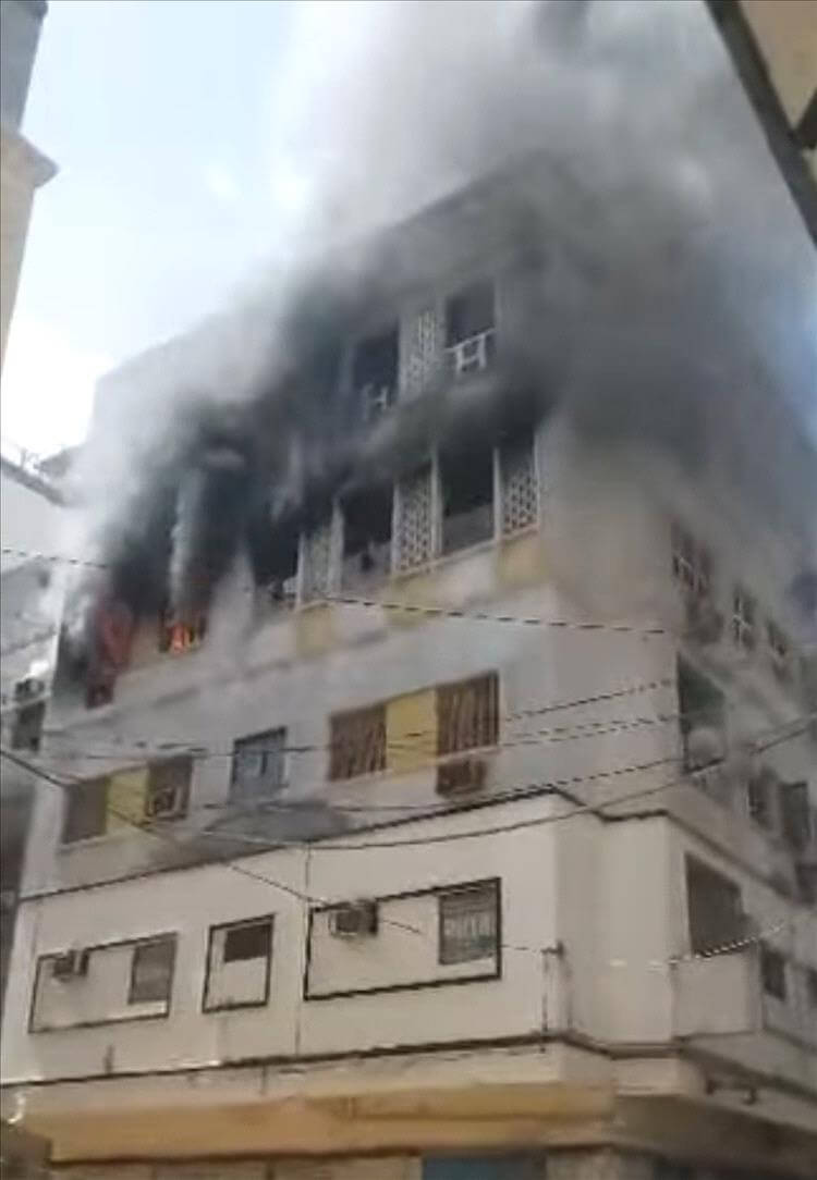 ‏نشب صباح اليوم الجمعة حريق كبير في عمارة سكنية بمدينة القديمة كريتر عدن