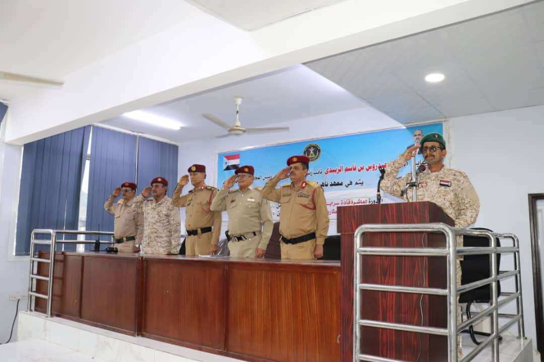 شهد معهد تأهيل القادة والأركان في العاصمة عدن، اليوم الثلاثاء حفل تدشين الدفعة العاشرة قادة سرايا مشاة والدفعة السادسة قادة بطاريات دفاع جوي بحضور عدد من القيادات العسكرية والأمنية.