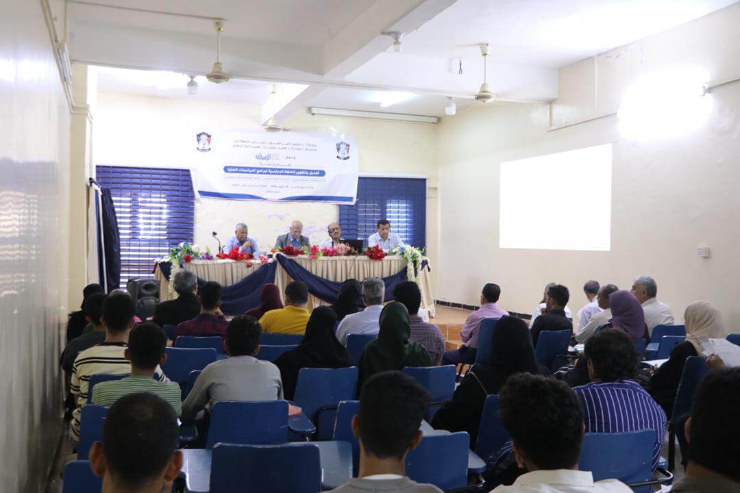 أقامت كلية الإعلام بجامعة عدن صباح اليوم الأحد الموافق 20 أكتوبر ورشة عمل لتعديل وتطوير الخطة الدراسية لبرامج الدراسات العليا للأقسام الثلاثة في الكلية، وذلك برعاية رئيس الجامعة الدكتور الخضر لصور.