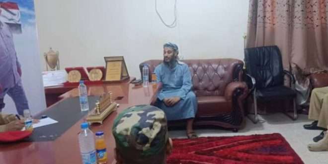 التقى العميد احمد محمود البكري قائد لواء الشرطة العسكرية الجنوبية بمكتبه العقيد وضاح قاسم رئيس دائرة العلاقات العامة بالحزام الامني عدن والمقدم خالد العولقي نائب رئيس دائرة التدريب بالحزام الأمني عدن.