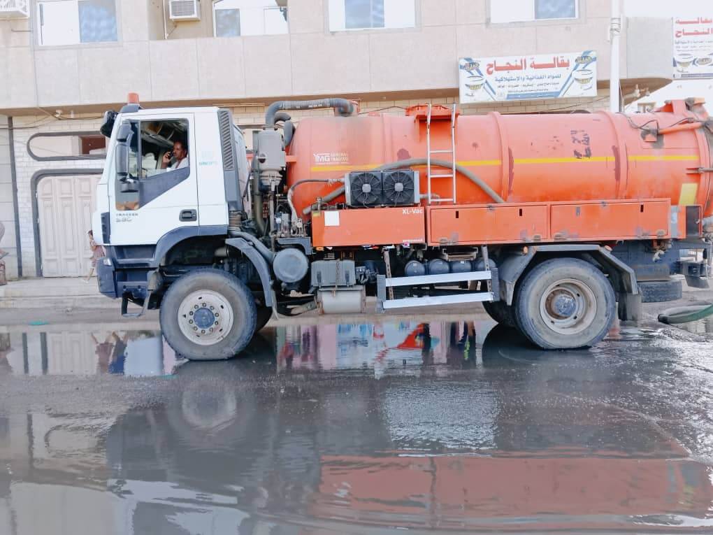 بتوجيهات من مدير عام مديرية البريقة د. صلاح الشوبجي، تجري أعمال شفط مياه المجاري من الشوارع المجاورة لمحطة كود النمر لضخ ورفع مياه الصرف الصحي.