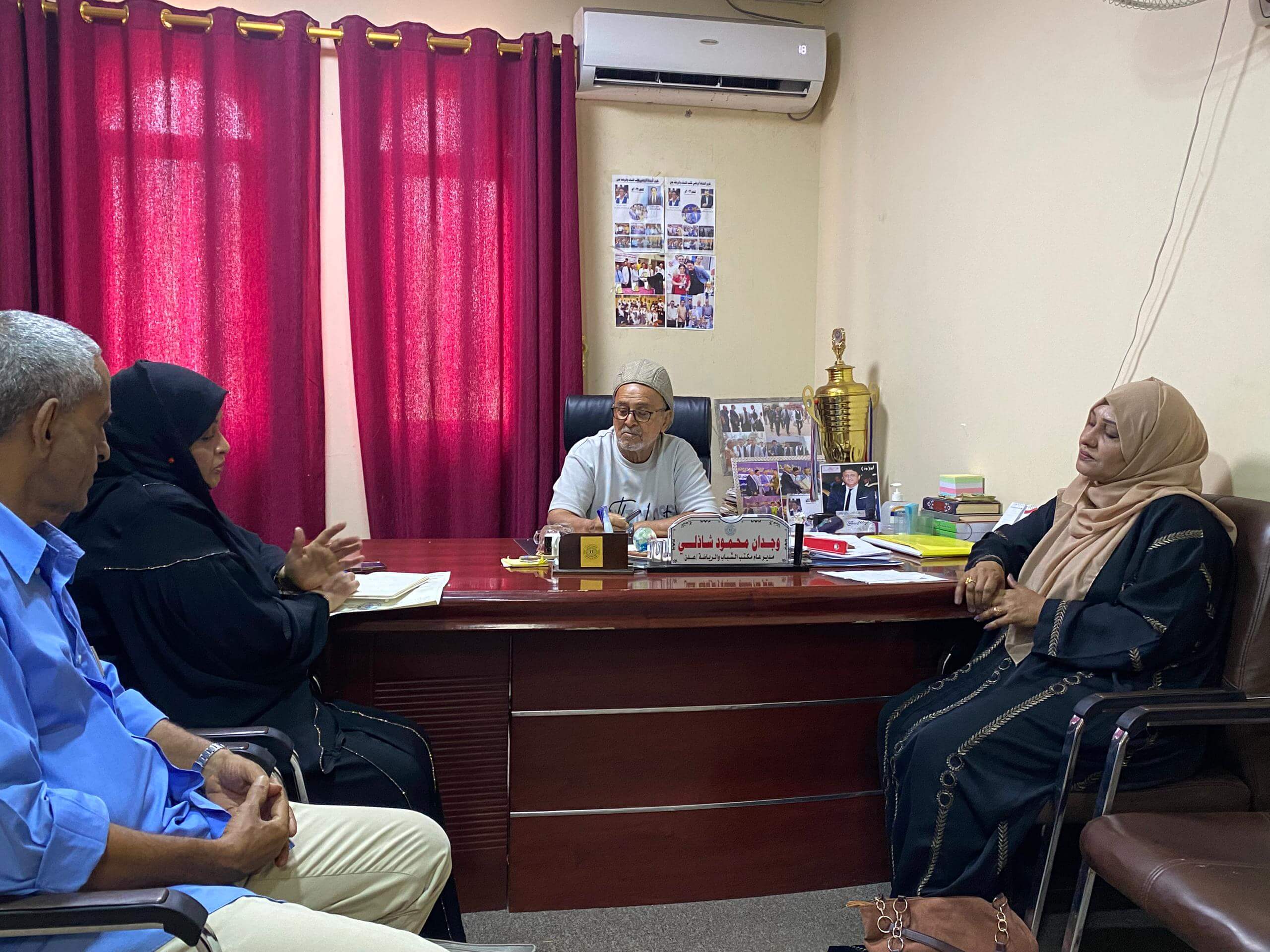 التقت صباح اليوم الاثنين نائب رئيس لجنة شؤون الشباب والرياضة بمجلس المستشارين بالمجلس الانتقالي الجنوبي الأستاذة مواهب منصور بالهيئة الإدارية لمكتب الشباب والرياضة بالعاصمة عدن ممثلة بنائب مدير المكتب الكابتن محفوظ سيف سعيد وبحضور مسؤولي النشاط الرياضي ورئيس لجنة قطاع رياضة المرأة بالمكتب نبيل محمد سيف ونوال وارس .