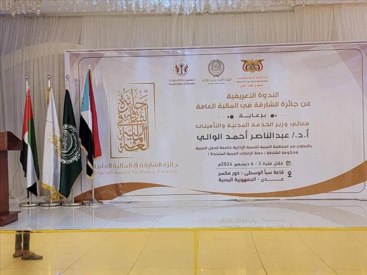 شهدت العاصمة عدن، صباح يوم الثلاثاء، انطلاق فعاليات الندوة التعريفية حول جائزة الشارقة في المالية العامة، بتنظيم مشترك بين حكومة الشارقة في دولة الإمارات العربية المتحدة والمنظمة العربية للتنمية الإدارية التابعة لجامعة الدول العربية.