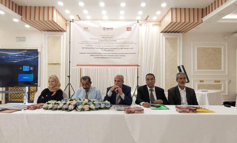 بحضور وكلاء وزارة الصحة العامة والسكان الدكتور شوقي الشرجبي وكيل قطاع الطب العلاجي والدكتور أحمد الكمال وكيل قطاع التخطيط دشن وكيل قطاع السكان الدكتور سالم الشبحي ورشة المصادقة على دليل المعايير الأكاديمية الوطنية المرجعية (NARS) لدبلوم القبالة ضمن خطة تحديث منهج القبالة التقنية